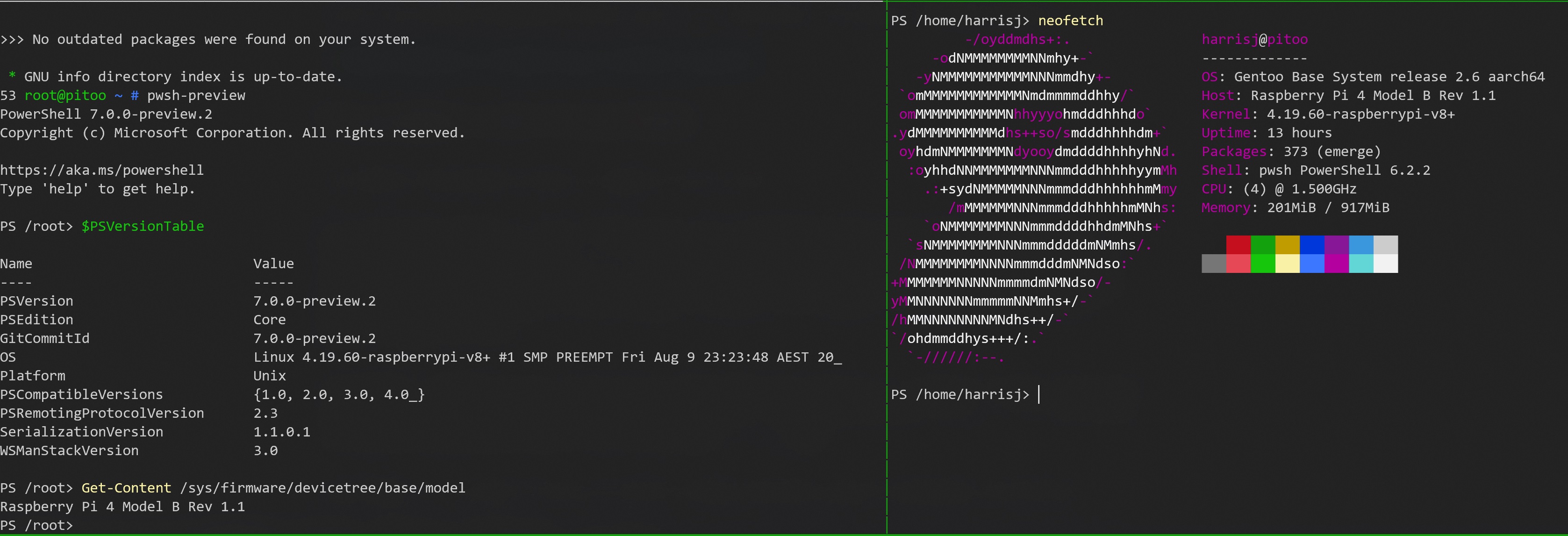 A final note and side-effect of switching to Gentoo on arm64, my overlay is slowly being updated to support arm64 and as such, PowerShell is the first to be updated